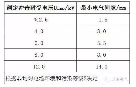 ——通过目测检查不明显大于下表中给出的值时,应通过实际测量或依据冲击电压耐受试验要求进行验证。