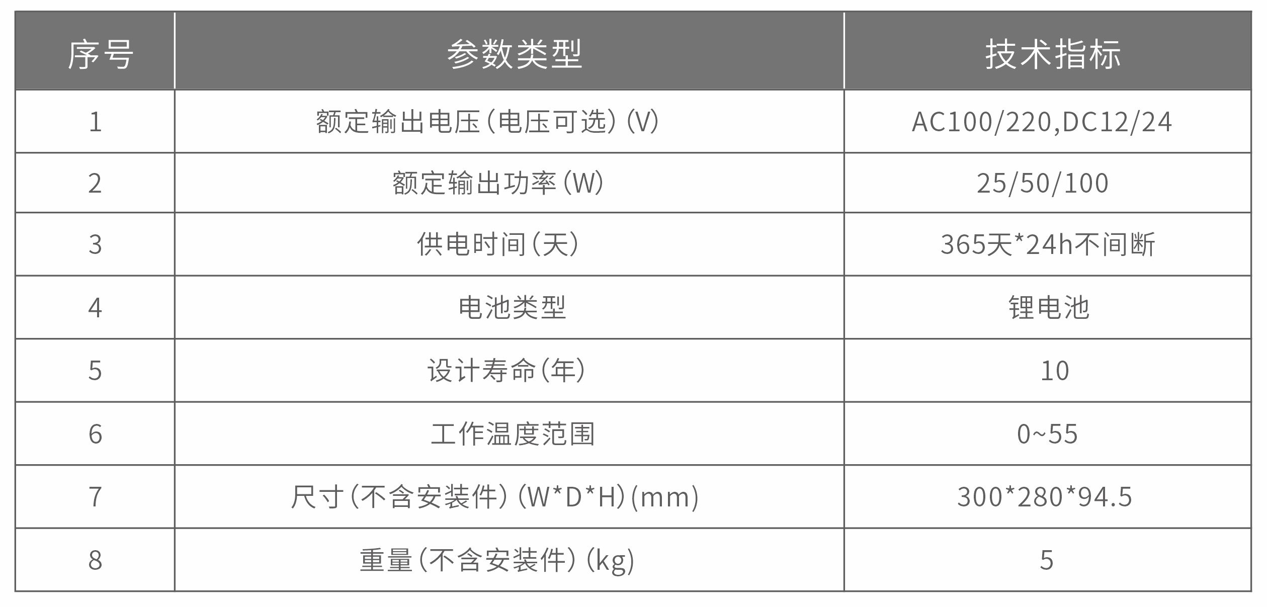 主要技术参数