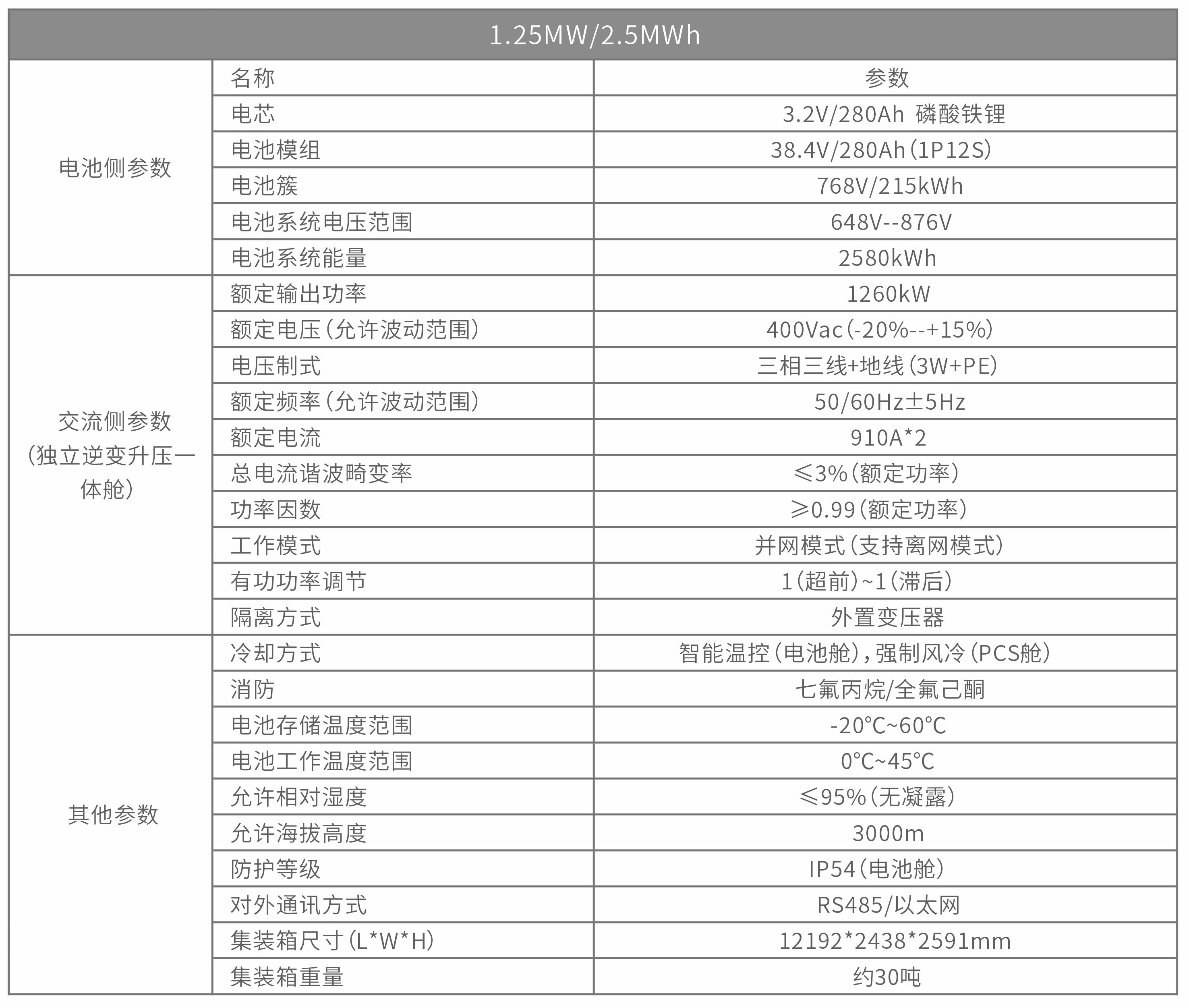 我司标准化40尺集装箱储能方案, 符合国内中大型电站级储能相关技术要求。储能系统设备采用集装箱一体化设计,将储能电池簇、电池控制柜、配电柜等设备安装在集装箱内,集装箱系统拥有独立的自供电系统、温度控制系统、火灾报警系统、门控照明、安全逃生系统、应急系统、消防系统等自动控制和安全保障系统。