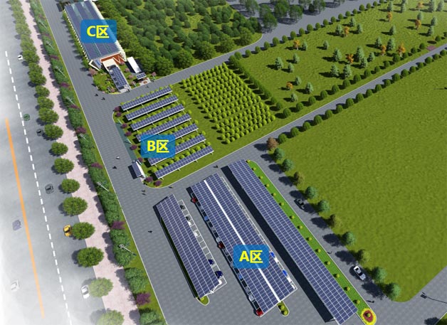 正在建设中的A区将包含光储充车棚及管运一体化系统,集中展示光伏发电、储能、汽车充电、智能停车管理、智慧充电运营等新能源应用。
