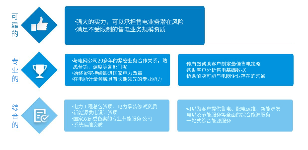 以增值服务为方向,提供节能、新能源、配电运维、综合能源管理等增值性服务,并可创新需求侧相应、碳资产等服务。